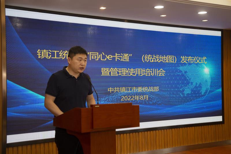發(fā)布儀式現場(chǎng),我公司副總陳蘇茗為鎮江市委統戰部及各轄市區統戰部、各民主黨派代表等與會(huì )人員講解鎮江統戰“同心e卡通”(統戰地圖)小程序使用方式及相關(guān)注意事項。